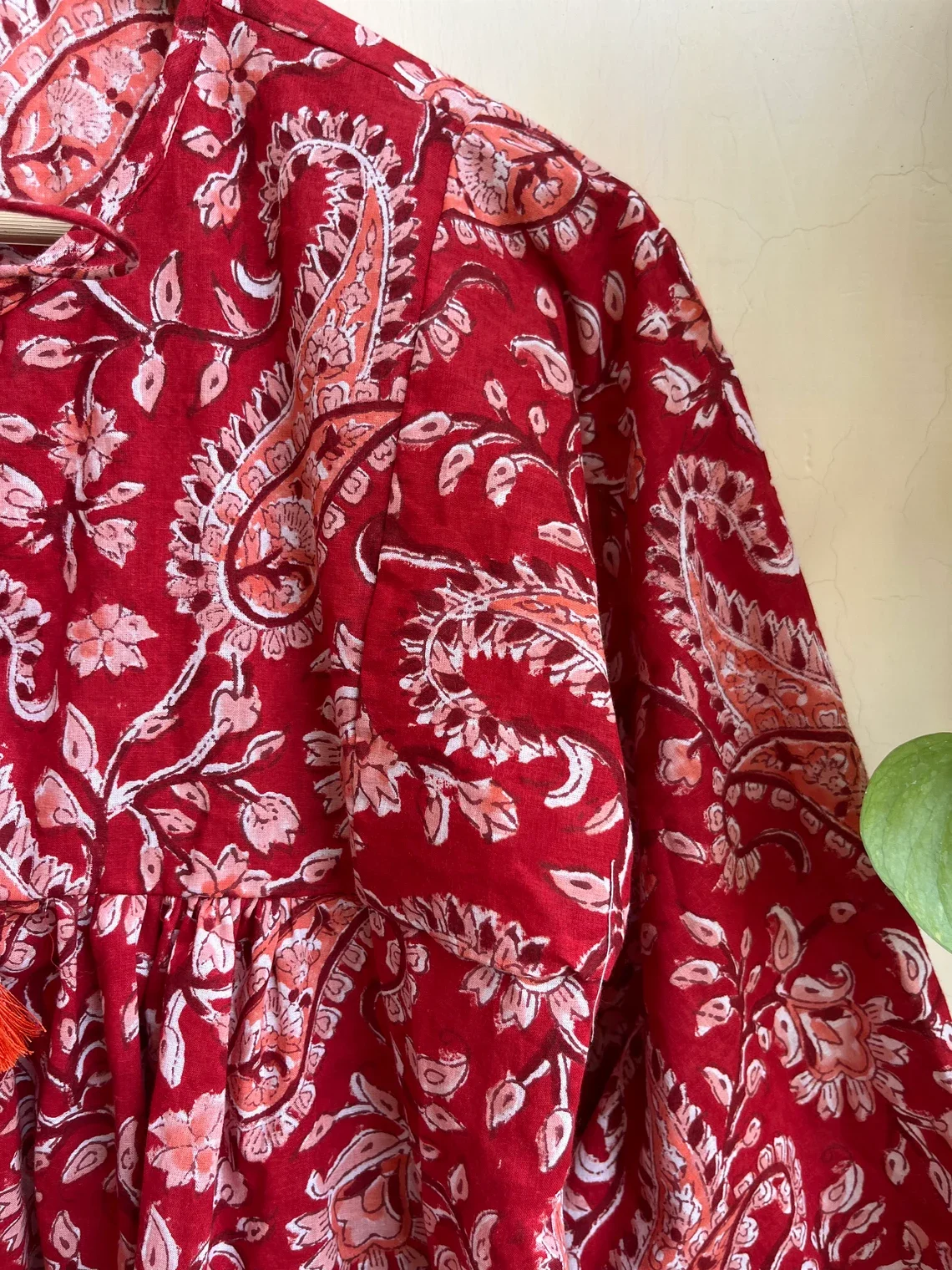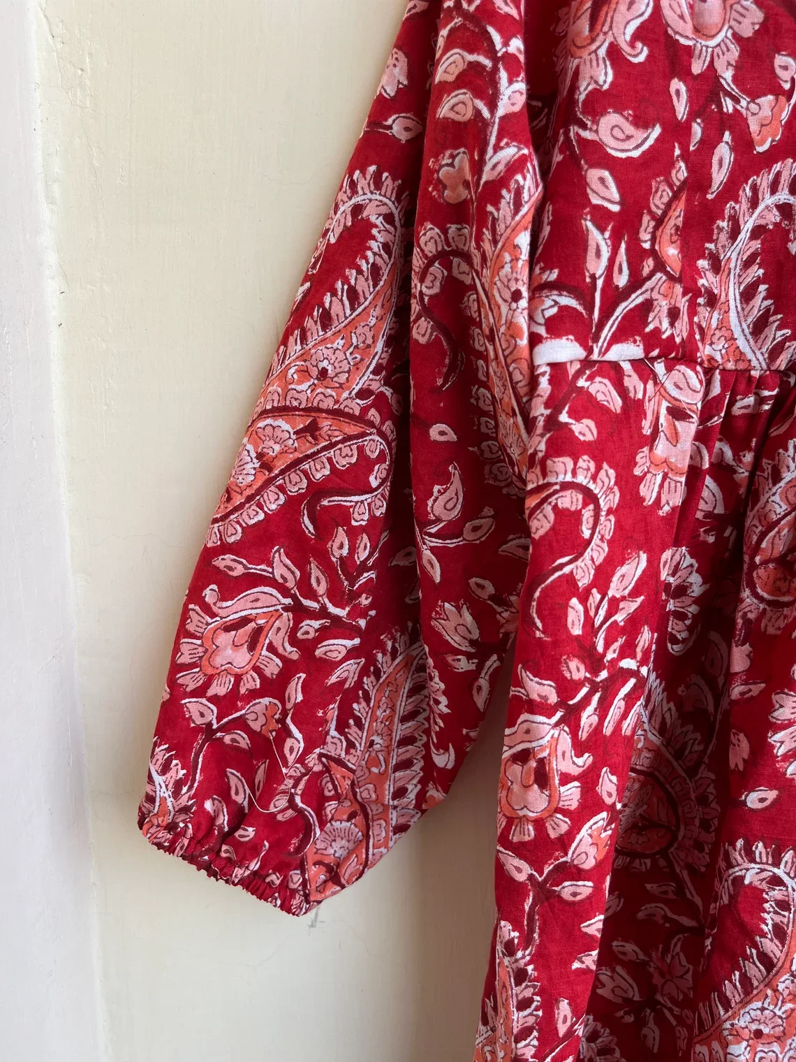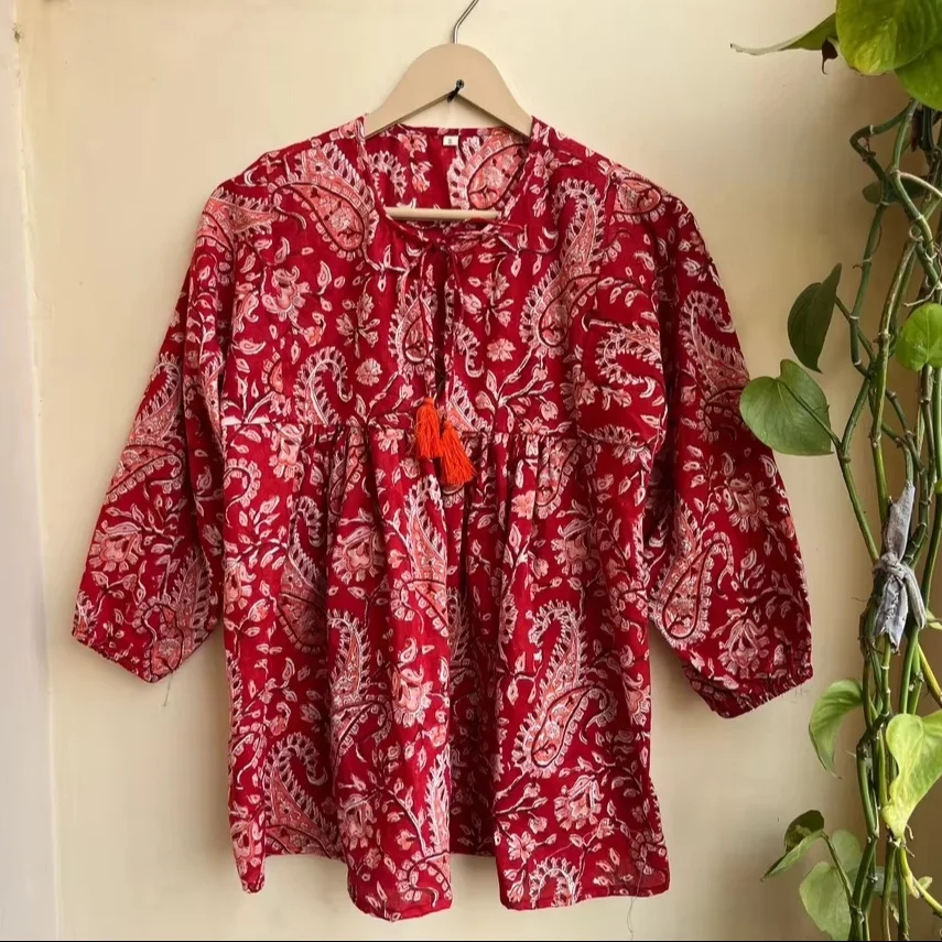 Hand Block Printed Cotton Floral Printed Top Tunic Bohemian Hippie Floral Print Long Sleeve Round Neck Casual Top For Women